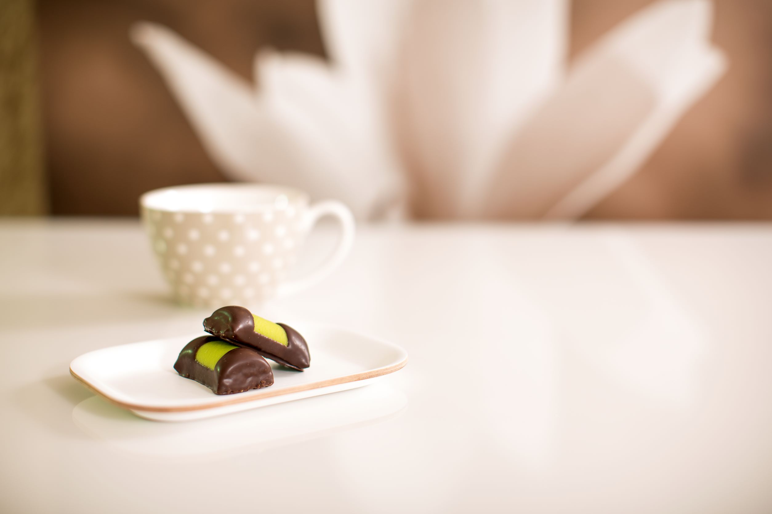 Eine Variante des schwedischen Klassikers „Punschrolle“. Mit einer Füllung aus Arrak und Pistazien umwickelt in helles Marzipan.