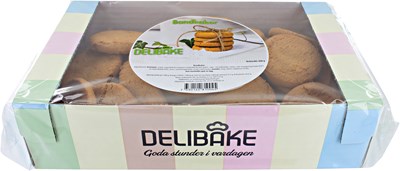 Vetemjöl socker, vegetabilisk olja (palm-, raps-, och kokos), vatten, sirap, mandel 2,4 %, bakpulver (E500), salt, emulgeringsmedel (E471 av vegetabiliskt fett), arom.
