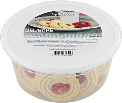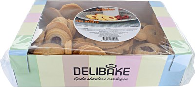 Vetemjöl, vegetabilisk olja (palm-, raps-, och kokos), socker, hallonfyllning 14% (socker, hallon 45 %, vatten, förtjockningsmedel (E440), surhetsreglerande medel (E331, E330, E333), konserveringsmedel (E202), vatten, arom, salt, emulgeringsmedel (E471 av vegetabiliskt fett).